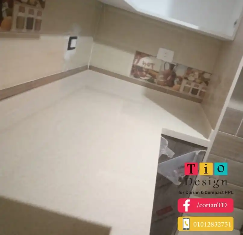يعد الكوريان واحدا من أكثر الخامات انتشارا فى تصميم المطابخ الحديثة، خاصة عند الحاجة إلى سطح عمل عملي وذكى ومقاوم للمشاكل اليومية. فى مشروع بيت الوطن بالتجمع تم تنفيذ كاونتر توب كوريان كامل مع حوض كوريان مدمج فى نفس القطعة، مما يوفر مظهرا أنيقا وسلسا مع ضمان أعلى مستوى من النظافة وسهولة الصيانة.